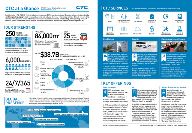 CTCの概要や事業内容をまとめたフライヤーデザイン