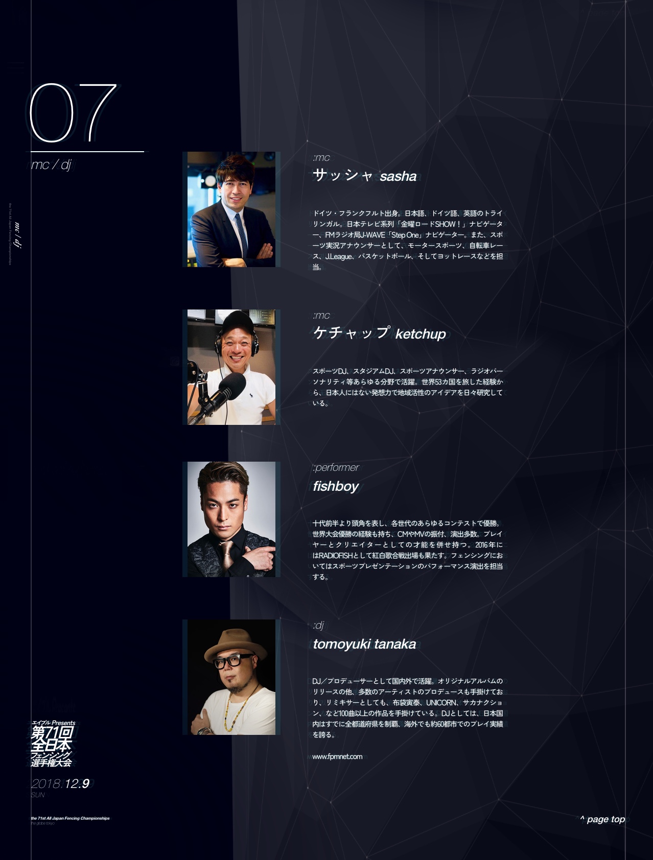 日本フェンシング協会主催の「全日本フェンシング選手権大会」特設サイトの実装を担当いたしました。