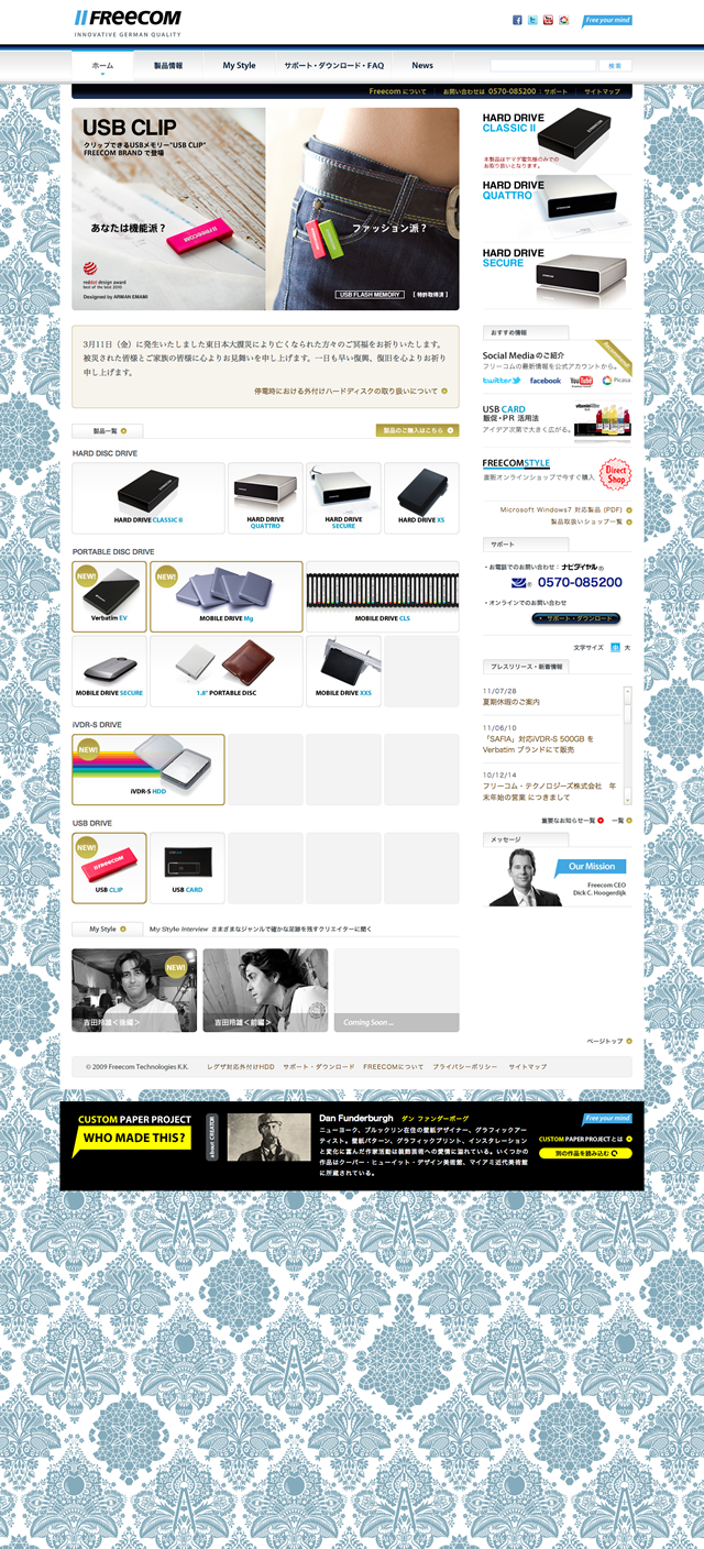 USBメモリや外付けハードディスクなどのストレージを扱うFreecomは製品情報の充実はもちろんのこと、情報感度の高いクリエイター向けに「My Style」という独自コンテンツを展開。