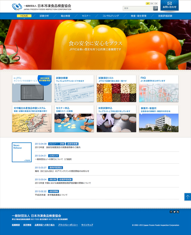 財団法人 日本冷凍食品検査協会様が一般財団法人に移行するにあたってウェブサイトをリニューアルすることになり弊社の方で制作のお手伝いをさせていただきました。