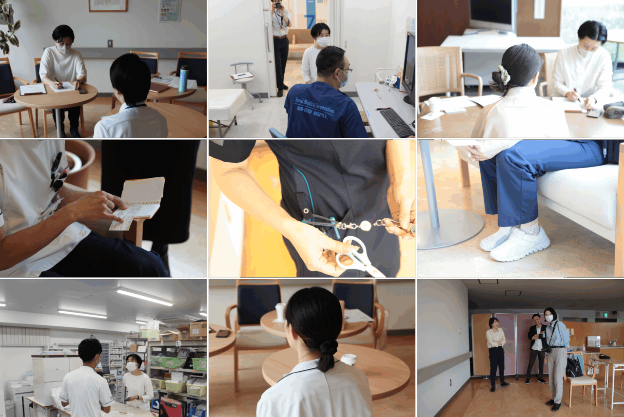 プライバシーに配慮し、写真は使わずイラストを描き起こす方針としたため、資料として病院設備やユニフォームの細部、ポケットの中身まで、バシバシと撮影いたしました。