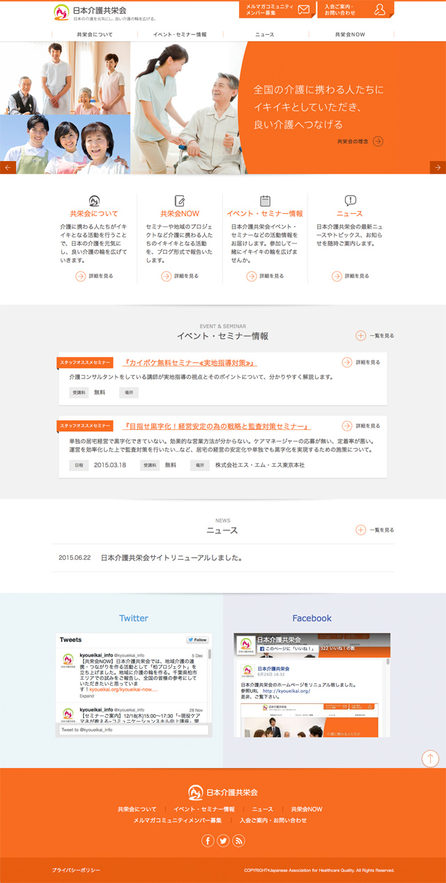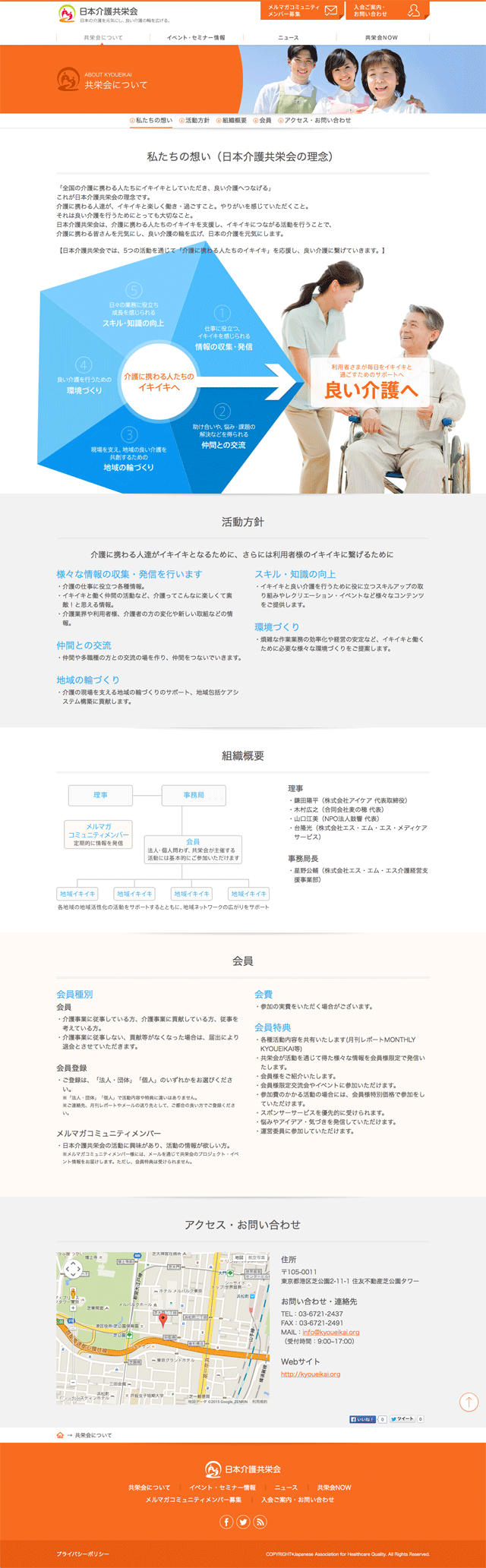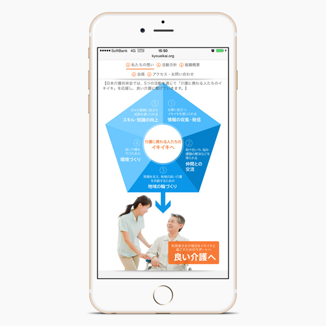 介護に携わる人たちのイキイキを支援し、イキイキにつながる活動を行っている日本介護共栄会様ウェブサイトのリニューアルをお手伝いさせていただきました。