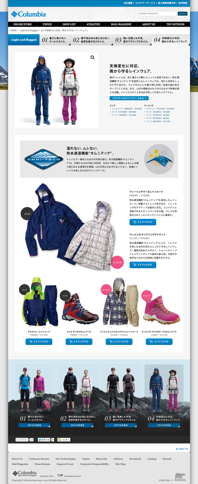 コロンビア スペシャルウェブサイト「ライト アンド ラギッド」の制作をしました。