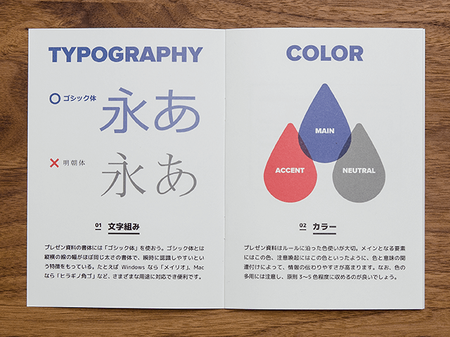 プレゼン資料向けのデザインノウハウを紹介する情報サイト「プレゼンデザイン」のノベルティ(小冊子)制作