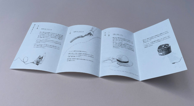 茅ヶ崎の帽子店 Sashiki の帽子箱に封入するリーフレットの制作をお手伝いさせていただきました。リーフレットでは各種帽子のお取り扱い、例えば保管方法やお手入れ、メンテナンスについての文章を、書籍の装画や挿絵などで活躍するイラストレーター マルーさんのドローイングとともに柔らかく伝えています。