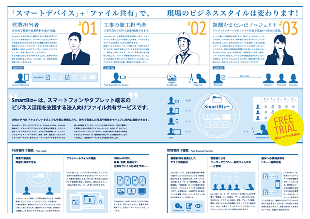 法人利用に特化したCTCのクラウド型ファイル共有サービス、SmartBiz+(スマートビズプラス)のウェブサイト&ブローシャー制作