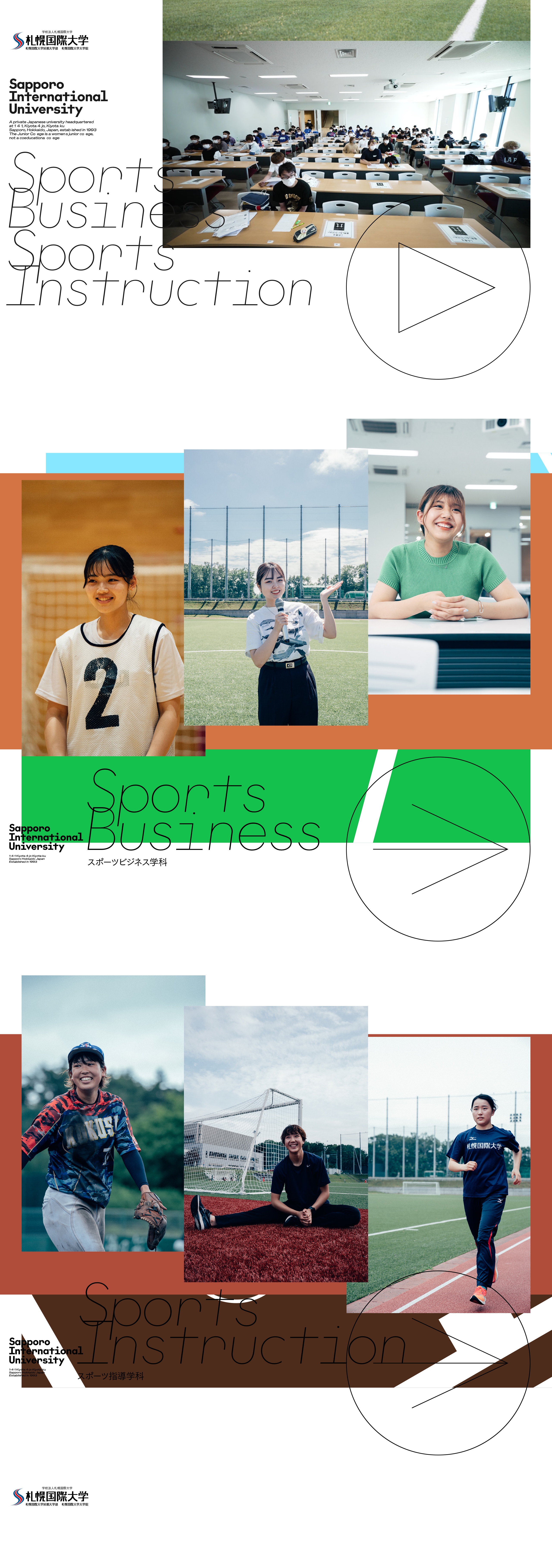 札幌国際大学のスポーツ人間学部スポーツビジネス学科およびスポーツ指導学科に所属する学生たちの声を取り上げた、LPページ “Sports and Human” の実装をいたしました。
