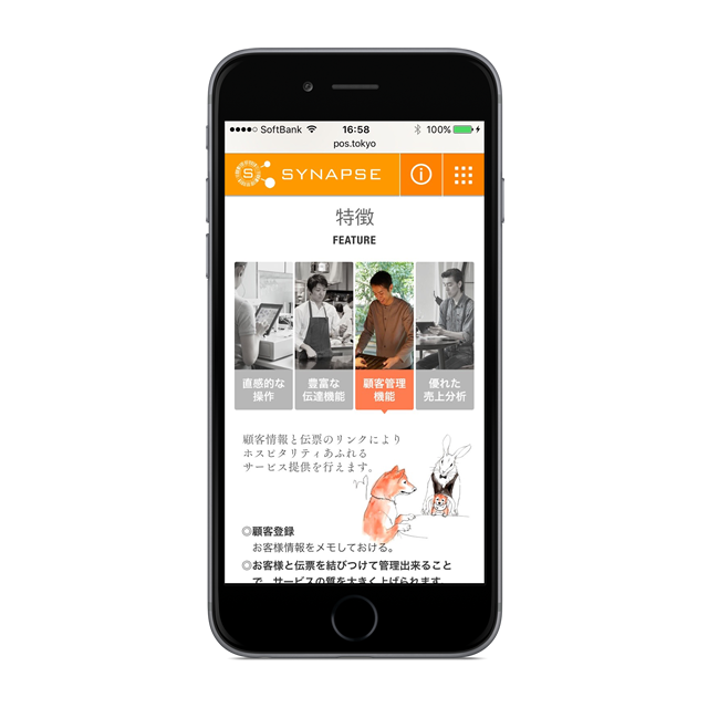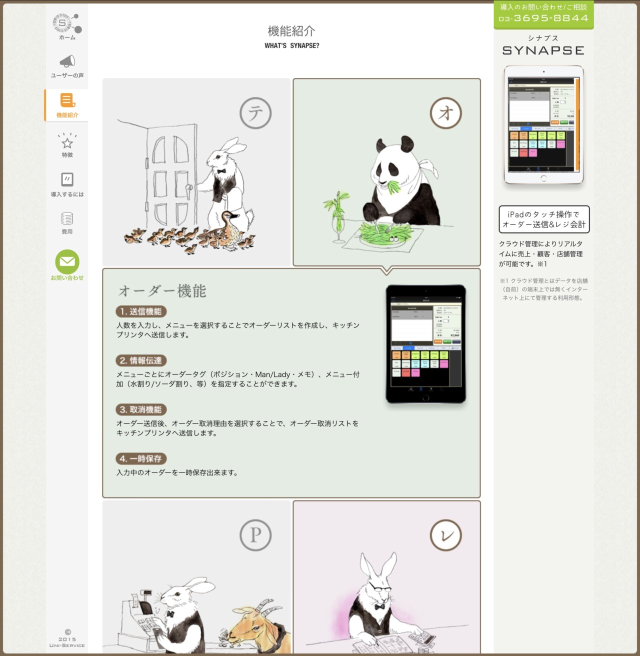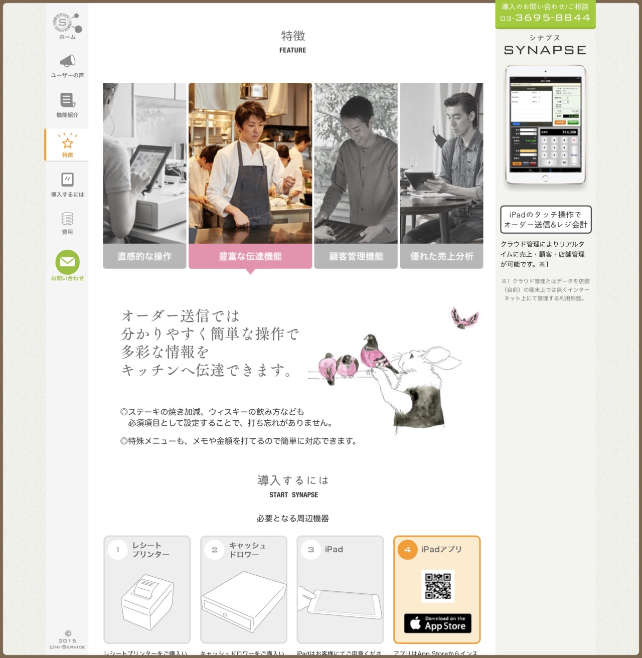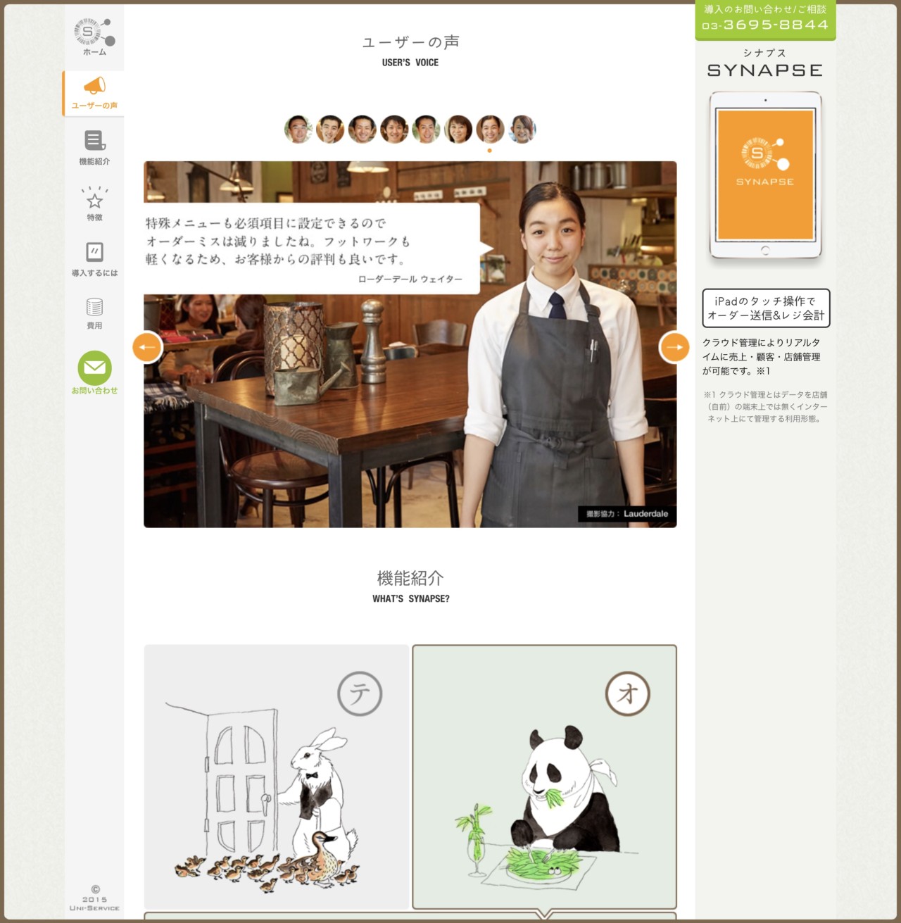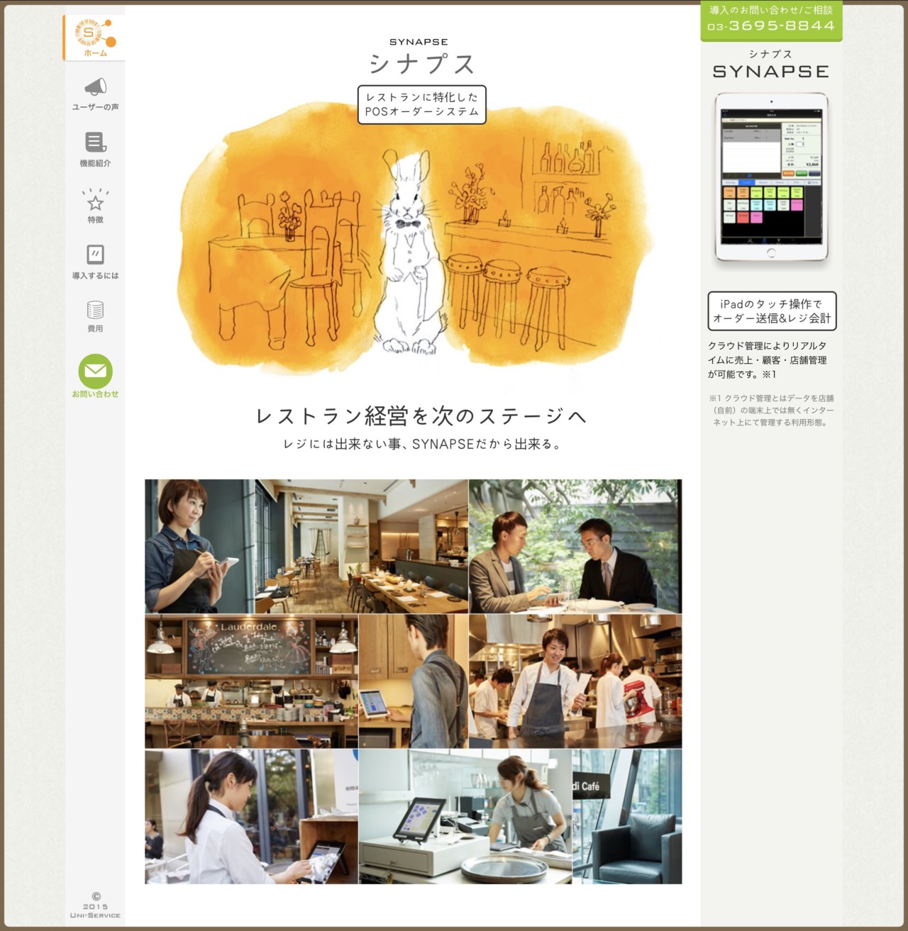 レストランに特化したPOSオーダーシステム「シナプス SYNAPSE」のサイト立ち上げをお手伝いさせていただきました。