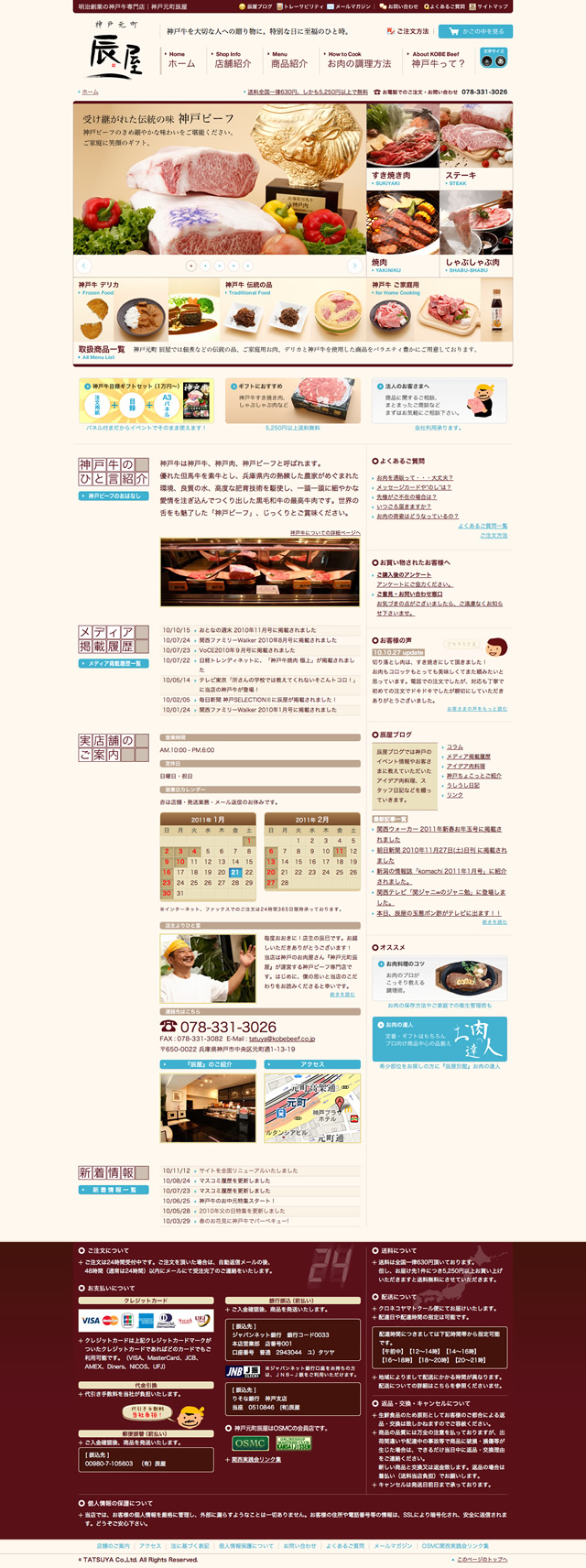 明治創業の神戸牛専門店、神戸元町 辰屋のサイトリニューアルを担当いたしました。