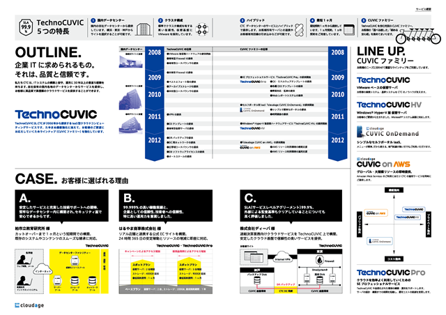 CTCが2008年から提供するIaaS型クラウドコンピューティングサービス、TechnoCUVICのカタログ制作をお手伝いさせていただきました。