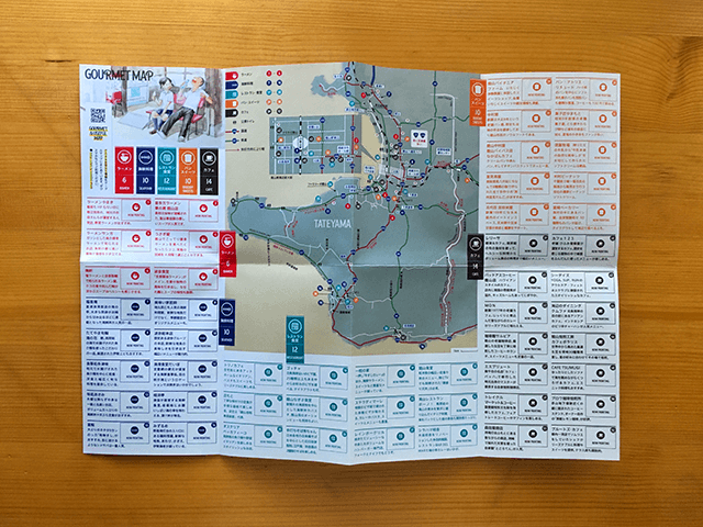 10月6日(土)、27(土)、11月23日(金)の3回に渡るサイクルイベントを通じて、被験者のGPSデータやフィードバックをもとにマップを更新。初回、市役所のプリンターを利用して10部片面印刷だったものが最終的には観光情報、グルメ情報満載の有用なハンディマップになりました。